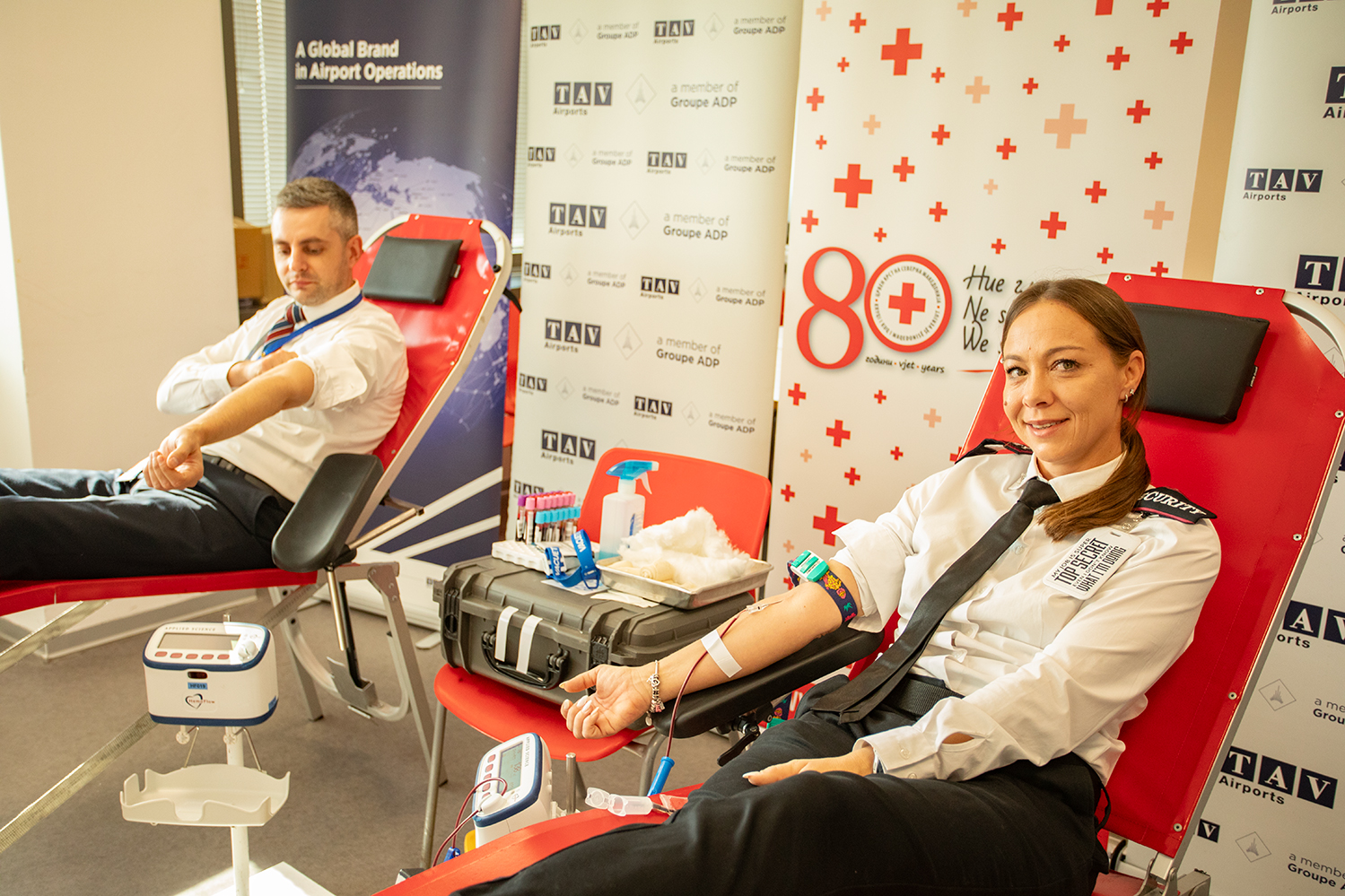TAV Macedonia, in cooperation with the Red Cross and the Institute for Transfusion Medicine, today carried out a blood donation activity where Skopje International Airport employees, volunteered in donating blood, at the airport premises.